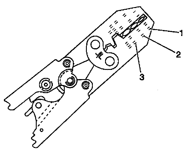 6. Place the splice sleeve in the nest. Ensure that the crimp falls midway between the end of the barrel and the stop. The sleeve has a stop (3) in the middle of the barrel (2) in order to prevent the wire (1) from going further. Close the hand crimper handles slightly in order to firmly hold the splice sleeve in the proper nest.