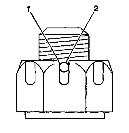 5. If necessary, tighten the ball stud castle nut in order to align the ball stud castle nut slot (1) to the ball stud cotter pin hole (2) as shown.