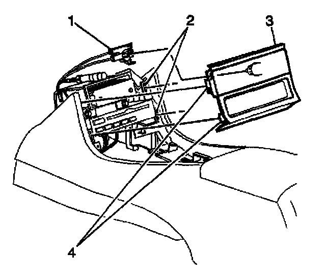 2. Align the tabs (4) on the upper console trim plate (3) with the retainers (2) on the instrument panel opening. Push the trim plate inward.