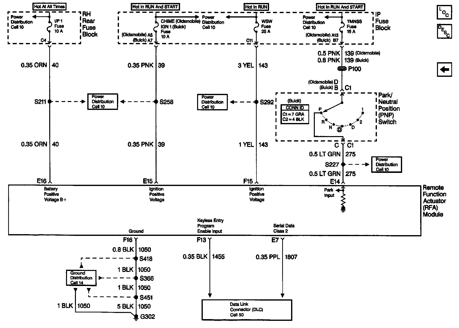 Keyless Entry Schematics: RFA Module Power, Ground And DLC: