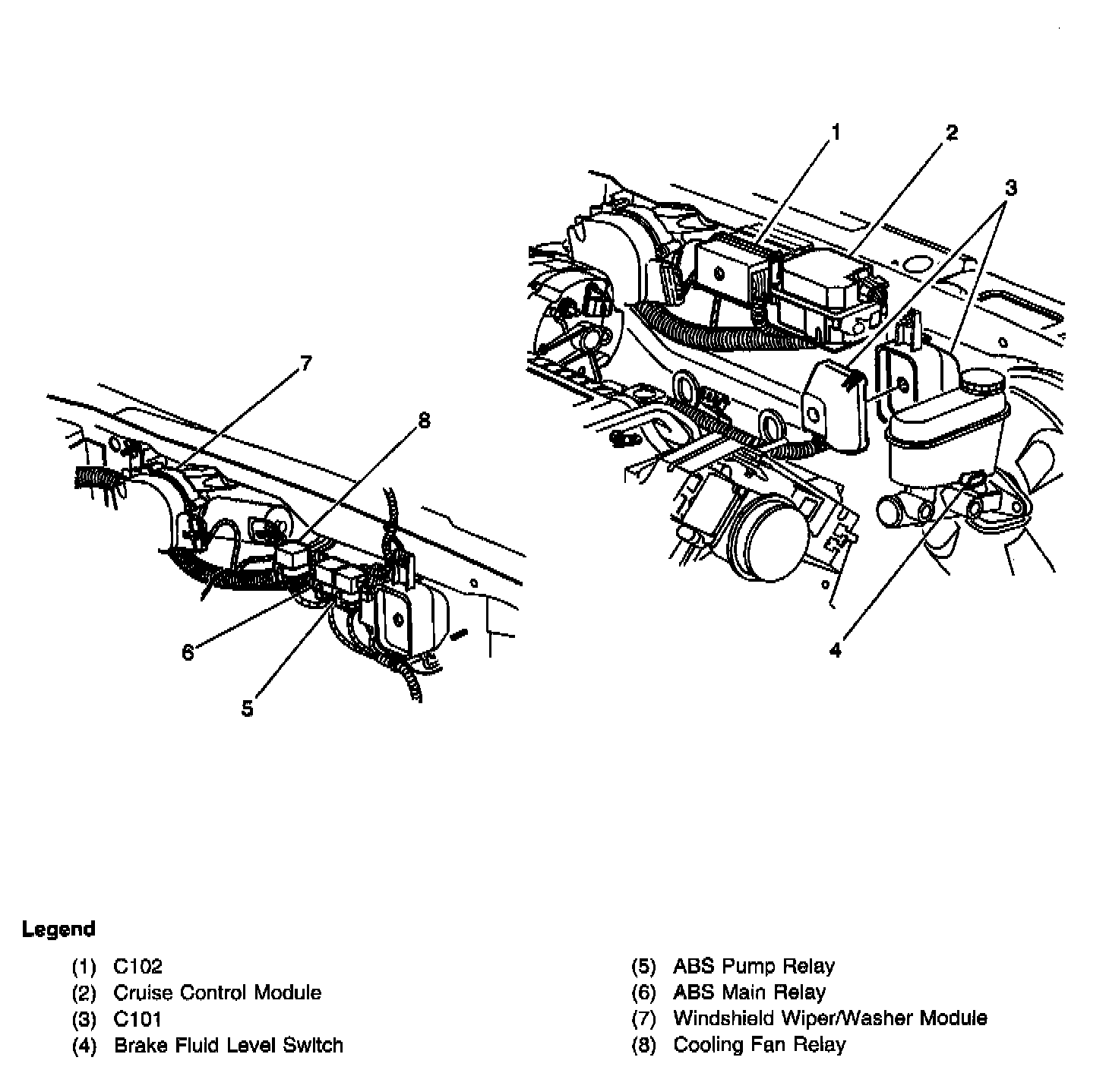 Center Rear Of The Engine Compartment: