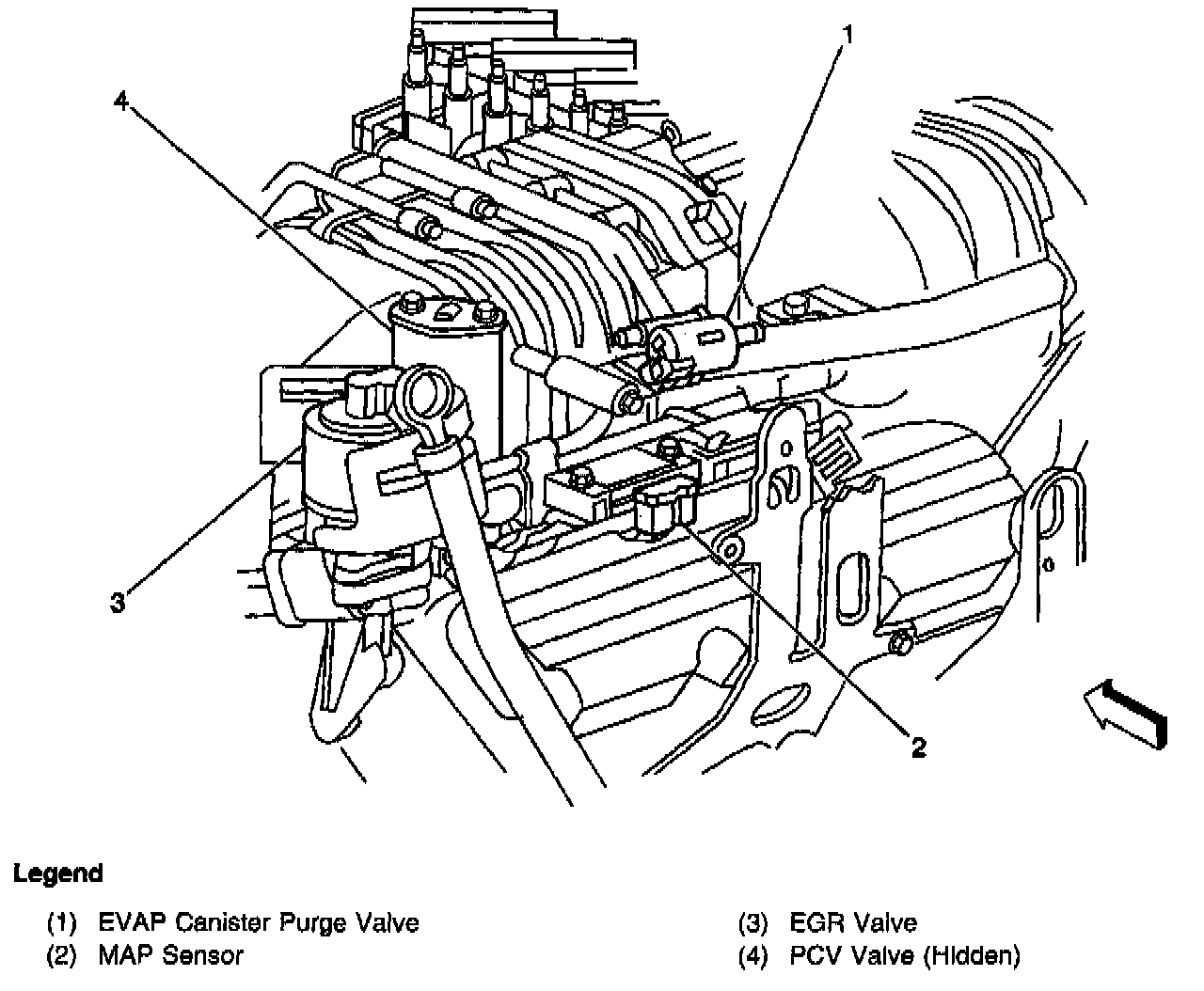 VIN 1 EVAP Canister Purge Valve, MAP Sensor, EGR Valve, PCV Valve: