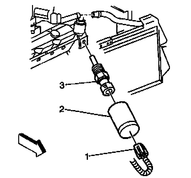 3. Disconnect the ECT sensor electrical connector (1) from the ECT sensor (3).