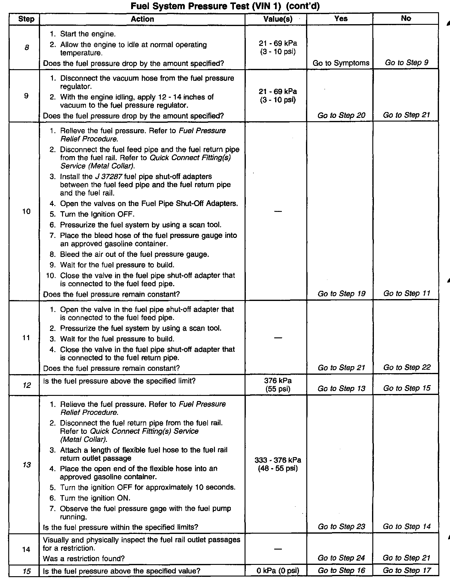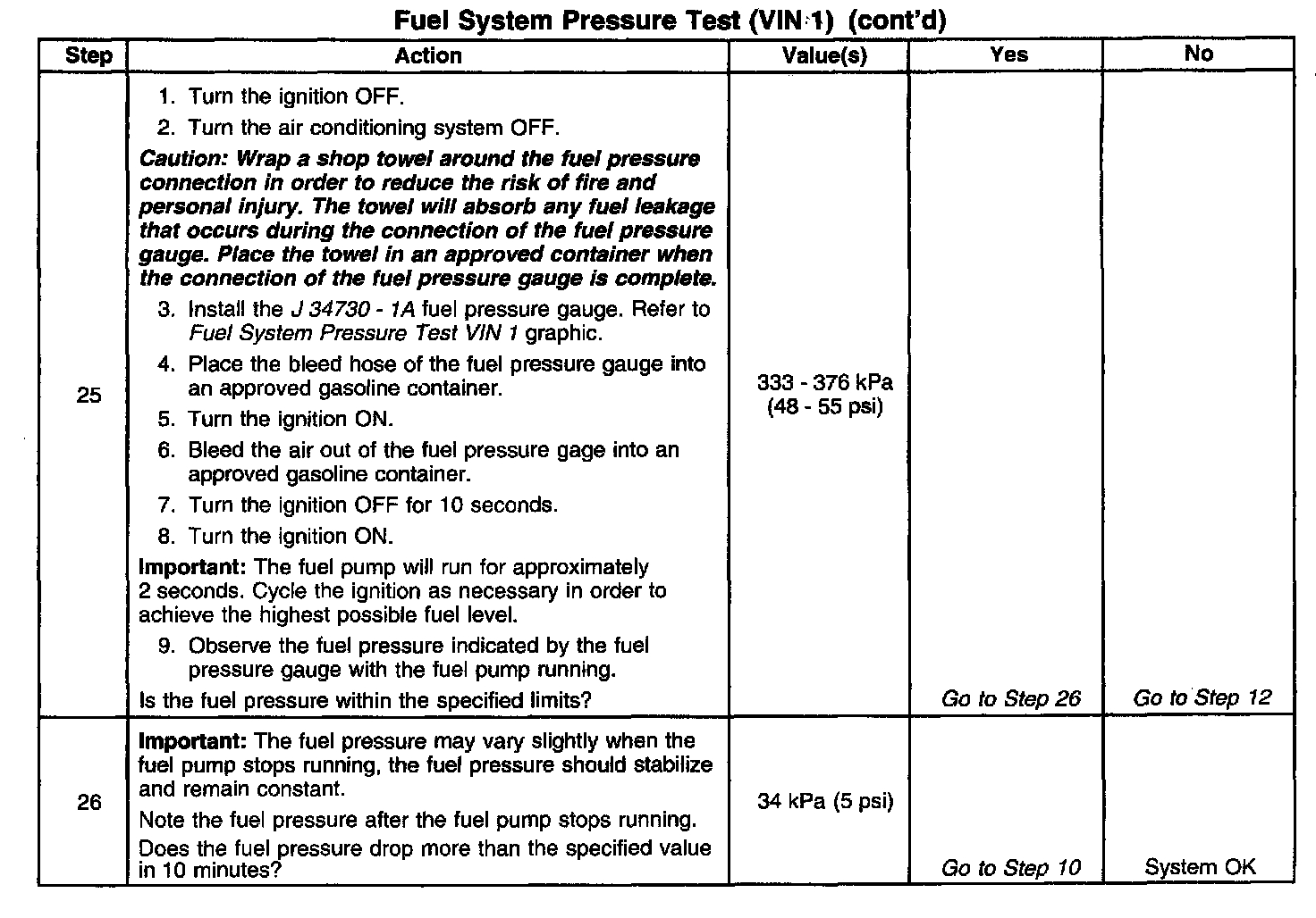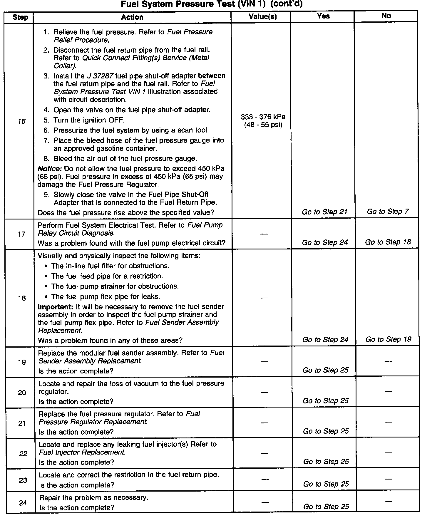 13. This test determines if the high fuel pressure is due to a restricted fuel return pipe or if the high fuel pressure is due to a faulty fuel pressure regulator.