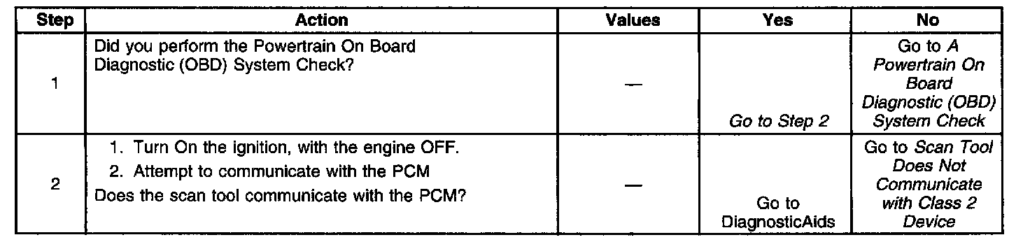 The Class II serial data circuit to the DLC allows bi-directional communication between the PCM and the scan tool. If communication between the scan tool and the PCM cannot be established, the procedure in the DLC Diagnosis table should be used to diagnose the condition.