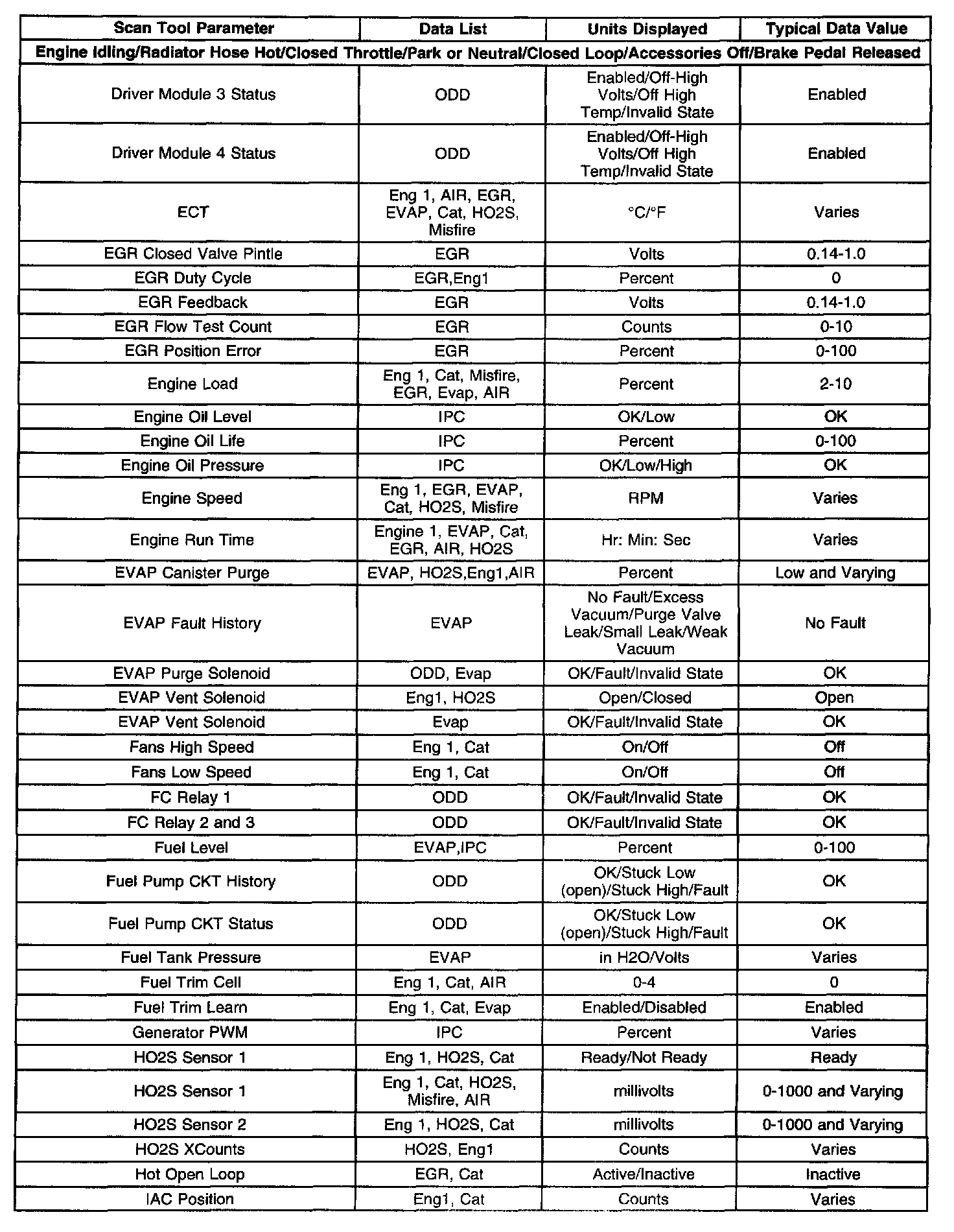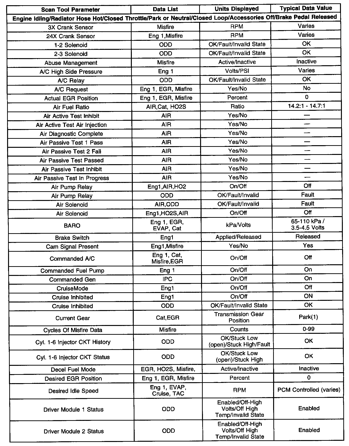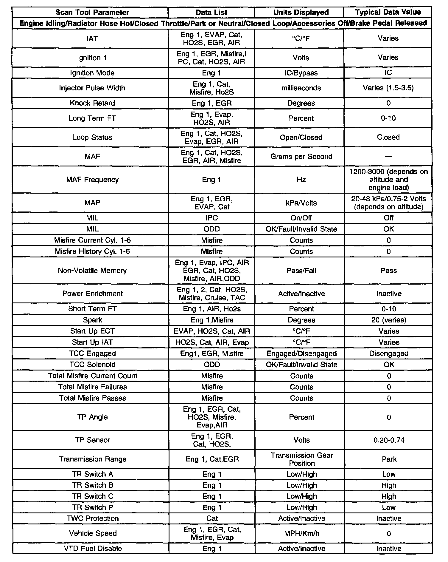 Scan Tool Data, Normal Values and Definitions