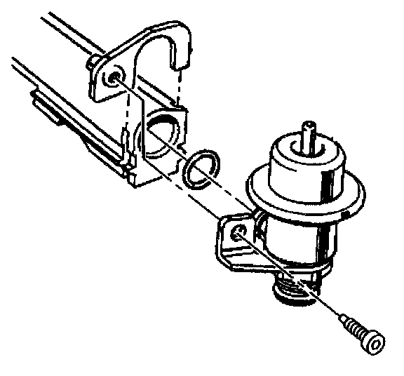 CAUTION: Connect the fuel return line before tightening the regulator attaching screw in order to prevent the regulator from rotating. Rotation of the regulator could damage the retainer and spacer bracket and lead to a fuel leak at the regulator inlet.