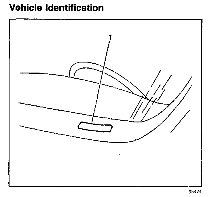 The Vehicle Identification Number (VIN) plate is the legal identifier of the vehicle. The VIN plate (1) is located on the upper LH corner of the Instrument Panel and can be seen through the windshield from the outside of the vehicle.