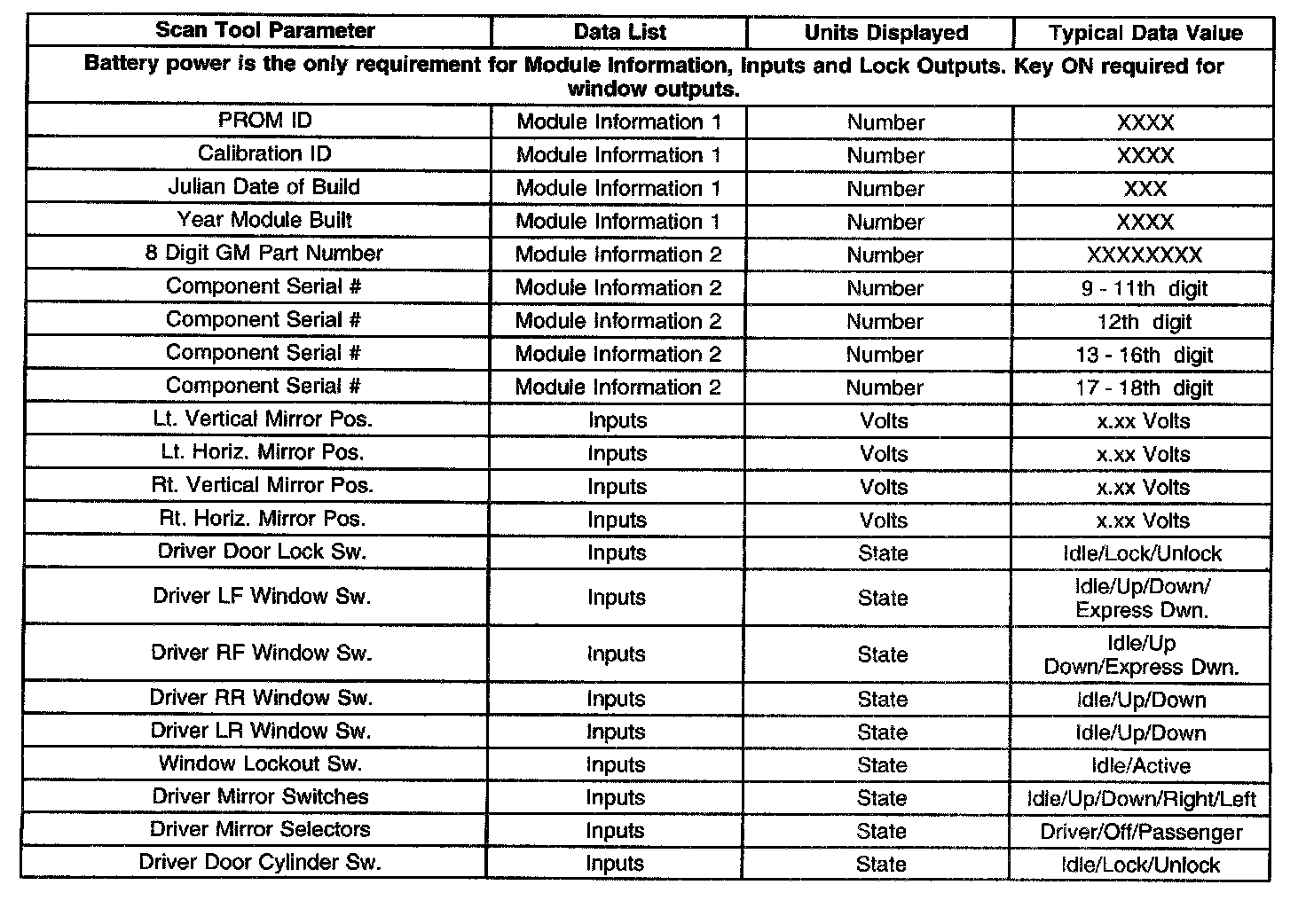 Scan Tool Data List