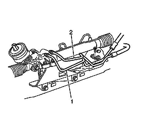 9. Install the brackets in order to retain the power steering lines (1,2) at the engine frame.