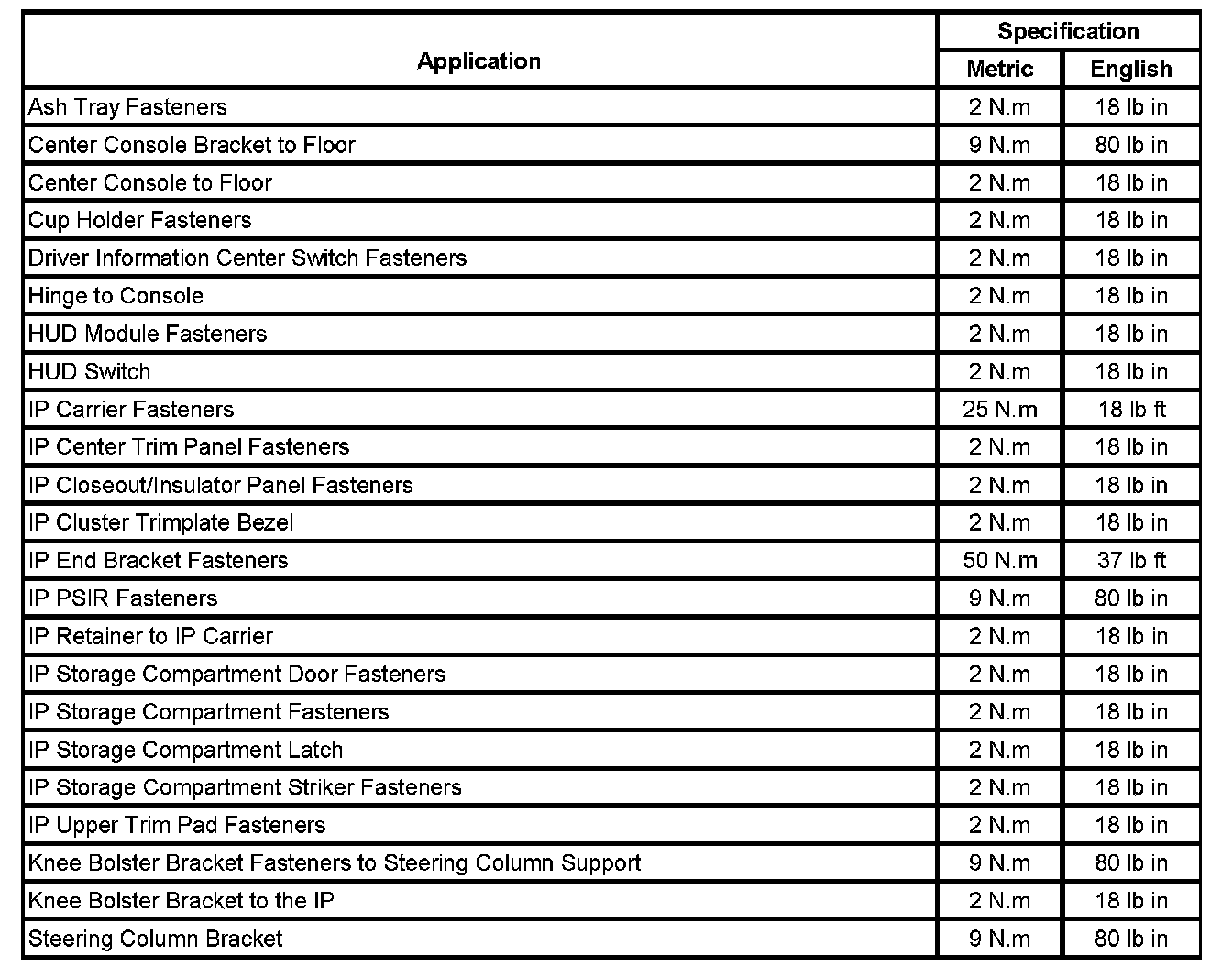Fastener Tightening Specifications