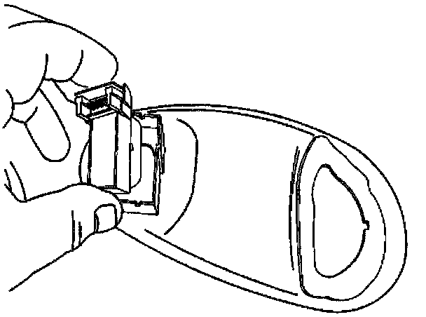 3. Remove the power door lock switch by releasing the lock tabs on the door handle bezel with a small flat bladed tool.