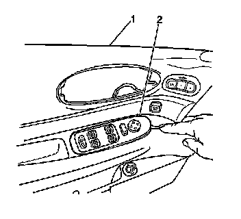 2. Gently pry upwards in order to release the front edge of the switch plate (2) from the door trim panel (1).