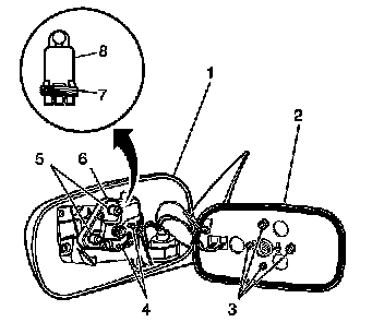 3. Gently pull the mirror glass assembly (2) from the housing (1).