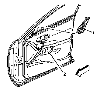 1. Remove the upper door trim panel (1).