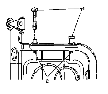 1. Insert a small tool into the access hole in the head restraint retainers (1).