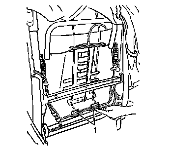 3. Secure the power lumbar assembly by snapping the retainers (1) onto the bar at the bottom of the seat back frame.