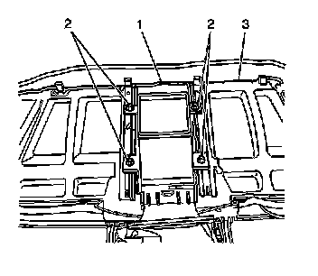 4. Remove the fasteners (2) securing the rear seat armrest assembly (1) to the rear seat back (3).