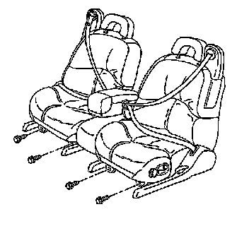 6. Remove the rearward front seat fasteners.
