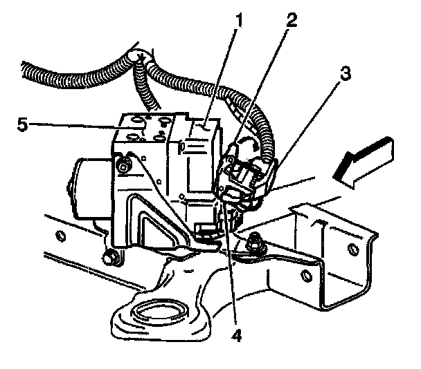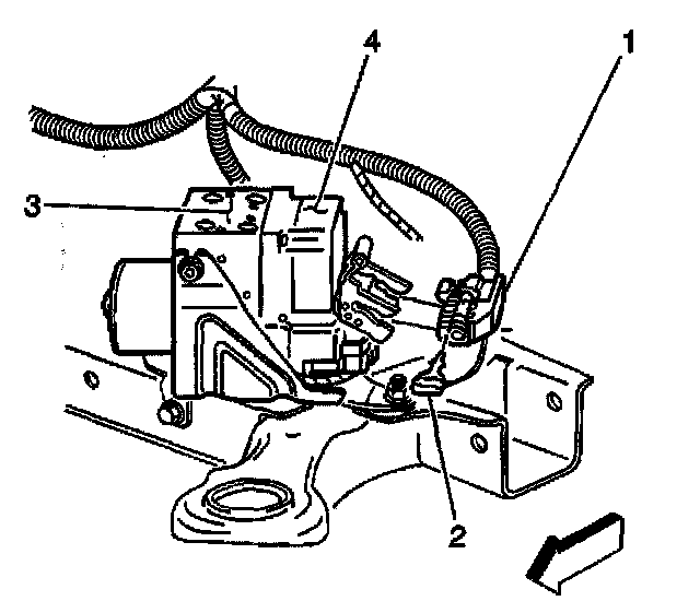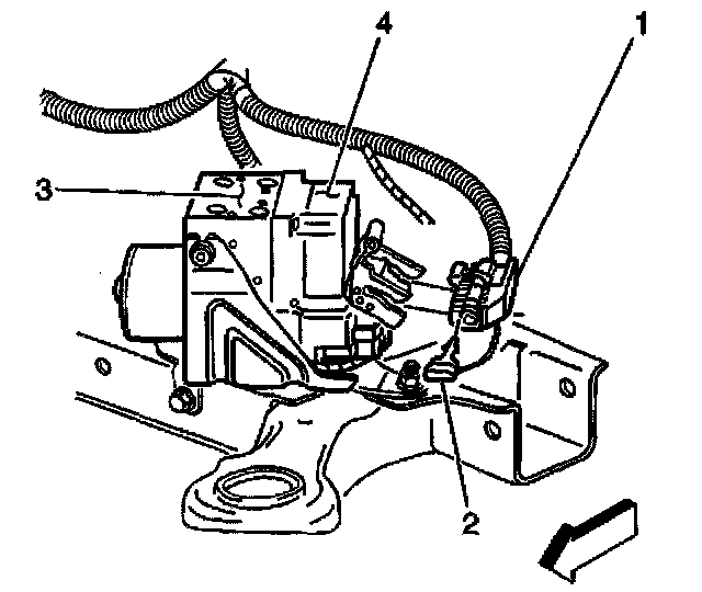 8. Remove the EBCM electrical connector (1) from the EBCM (4).