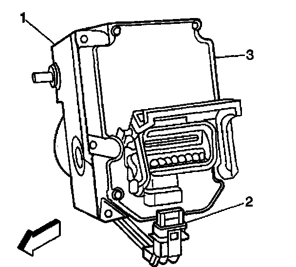 9. Remove the BPMV electrical connector (2) from the EBCM (3).