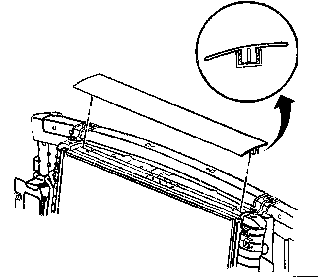 10. Install the upper radiator support bar. Refer to Radiator Support Replacement in Body and Frame.