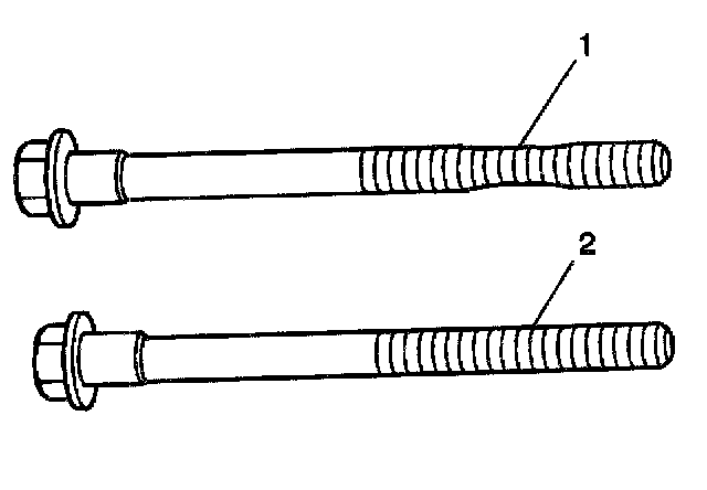 7. Inspect the bearing cap bolts (1 and 2). Replace the bolts, if the bolts are stretched.