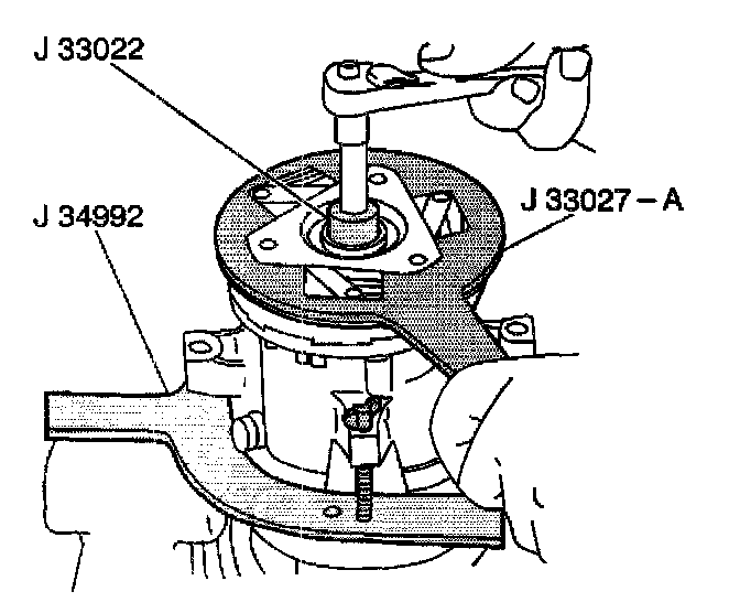 1. Clamp the J 34992 in a vise.