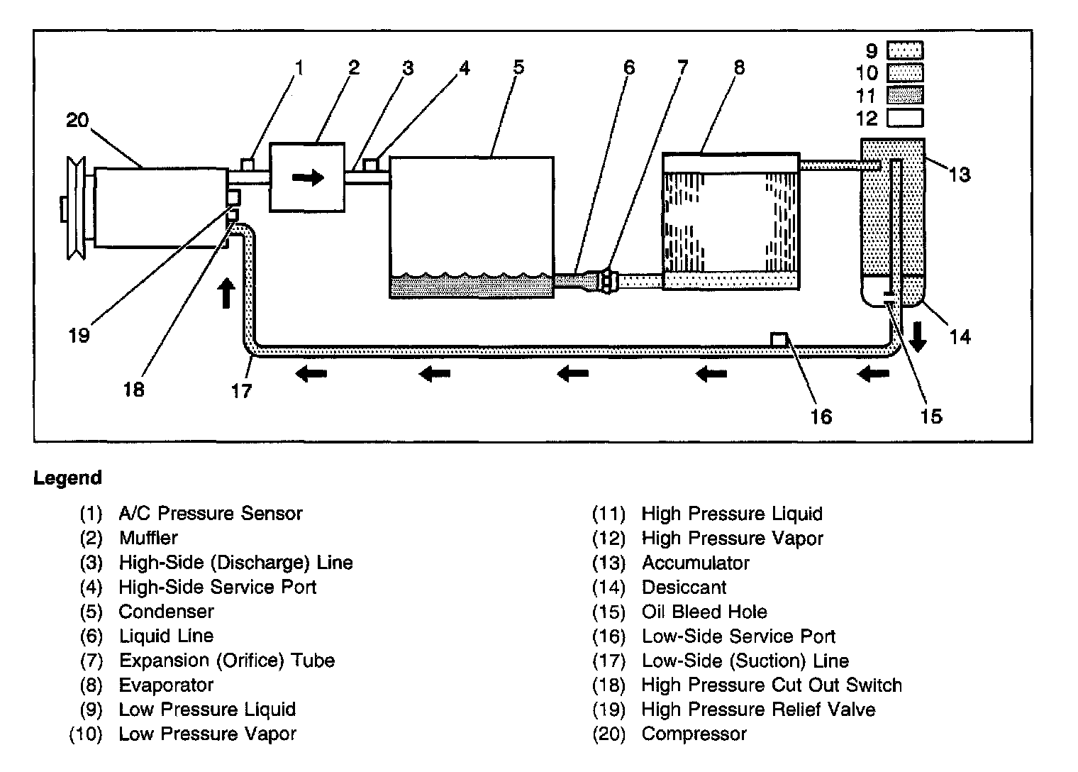 When the engine is turned to OFF, after the A/C system has been running, the refrigerant in the system will flow from the high pressure side of the evaporator tube orifice to the low pressure side until the pressure is equalized. This may be detected as a taint hissing sound for 30-60 seconds and is a normal condition.