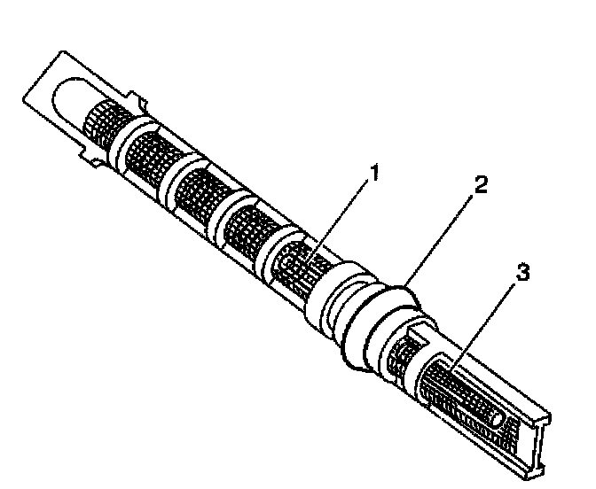 The plastic expansion (orifice) tube (2) is made of a mesh-screen (1) and orifice (3). The expansion (orifice) tube is located in the evaporator inlet pipe at the liquid line connection. The tube restricts the high pressure liquid refrigerant in the liquid line. Metering the refrigerant flow to the evaporator as a low pressure liquid. The expansion tube and orifice have filter screens which protect from contamination on both the inlet and outlet sides of the tube. The expansion tube is sealed inside the refrigerant pipe by an O-ring. This O-ring is necessary for proper operation of the refrigerant system. When the engine is OFF and the A/C is running, the refrigerant in the system flows from the high pressure side of the tube to the low pressure side until the pressure is equalized. This may be detected as a faint hissing sound for 30-60 seconds and is a normal condition.