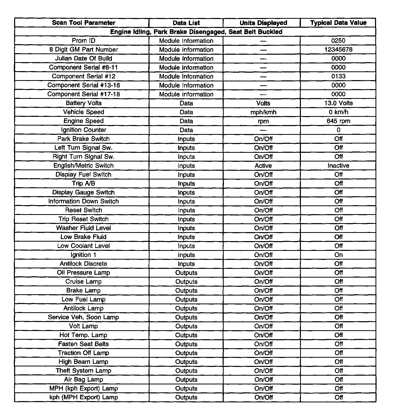 Scan Tool Data List: