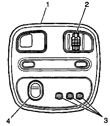 2. Carefully snap the dome lamp lens out of the overhead console assembly (1).