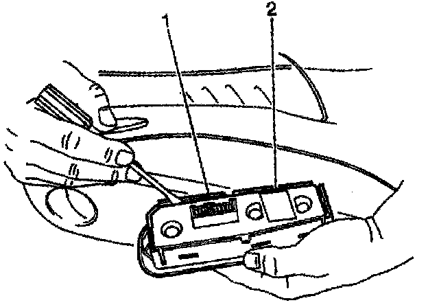5. Remove the switchplate (2) from the switchplate (1) by releasing the retainer tabs with a small flat bladed tool.