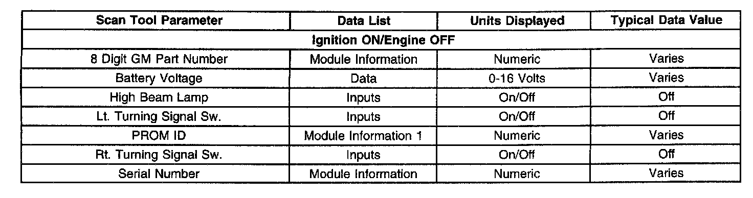 Scan Tool Data List - Instrument Panel Cluster (IPC)