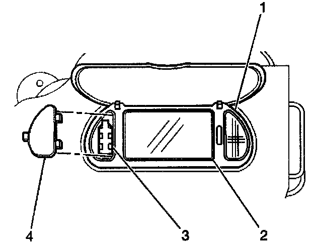 2. Install the vanity mirror lamp lens (4) into the vanity mirror assembly.