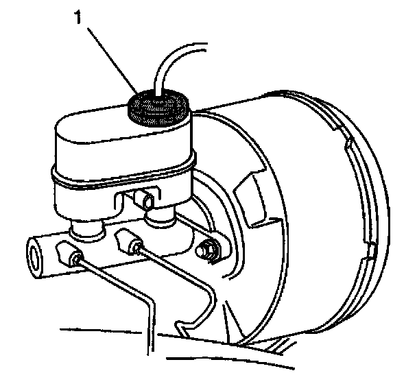 1. Remove the master cylinder reservoir cap. Replace it with J 44089 (1).