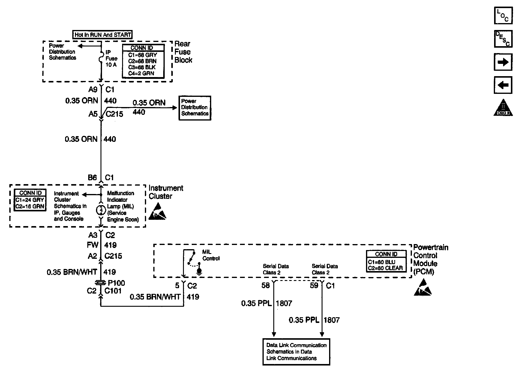 ^ When the Class II serial data circuit is shorted to ground, U1300 or U1305 will be set. Refer to DTC U1300 Class 2 Data Link Low or DTC U1305 Class 2 Data Link Low or High.