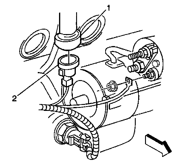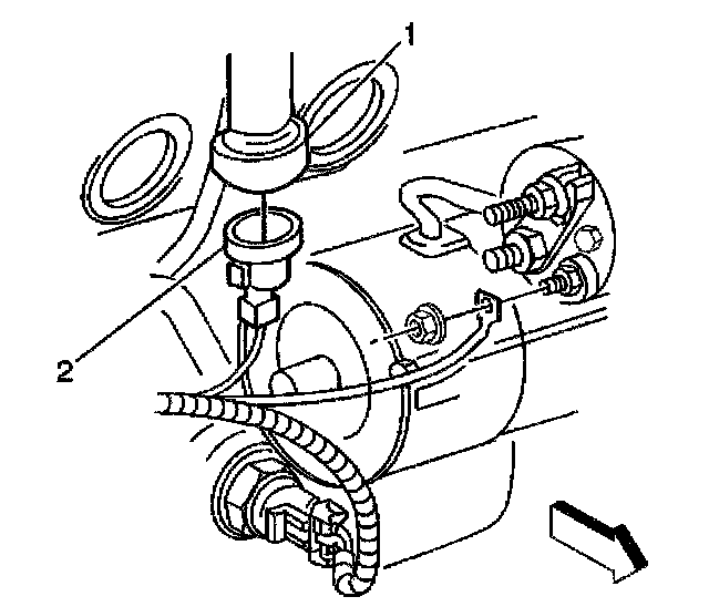 1. Install the knock sensor (2) into the engine block (1).