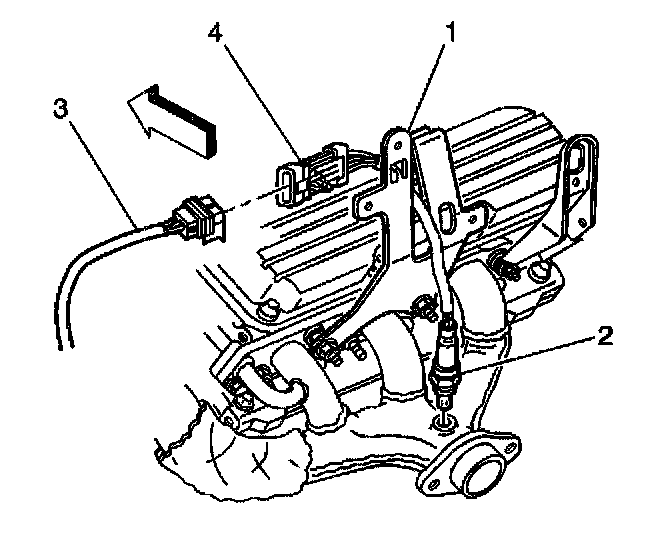 4. Disconnect the HO2S electrical connector tab from the HO2S 1 retaining clip.
