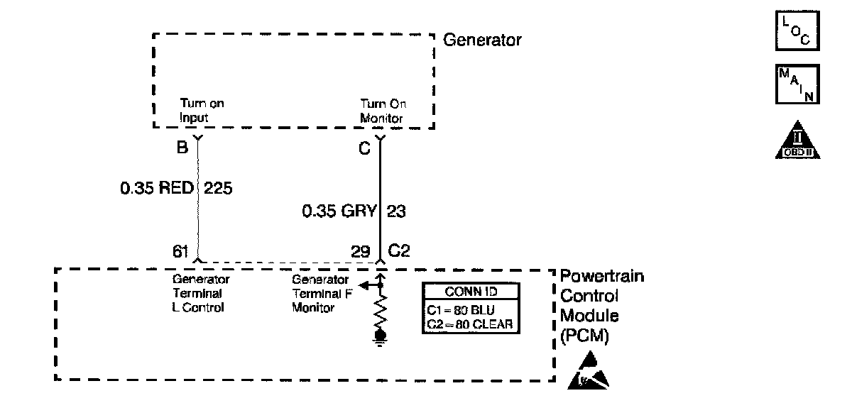 The PCM Output (L) terminal to the generator determines when the generator will be turned off. The generator is on under all normal vehicle operating conditions except during low RPM conditions. The generator is turned oft during low RPM conditions to remove excess load from the engine.