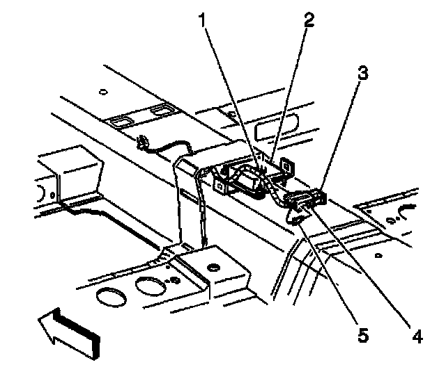 6. Install the Connector Position Assurance (CPA) (1) to the inflatable restraint Sensing and Diagnostic Module (SDM) wiring harness connector (2).