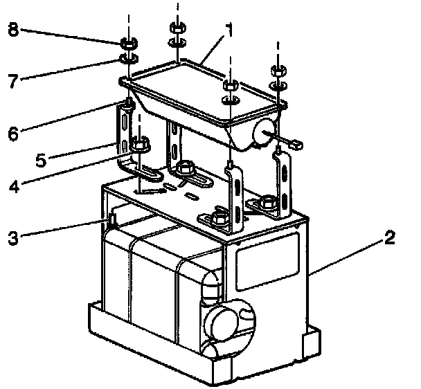 15. To mount, use four M 6 bolts (6), nuts (8), and washers (7) in order to secure the module (1) to the deployment fixture (2).