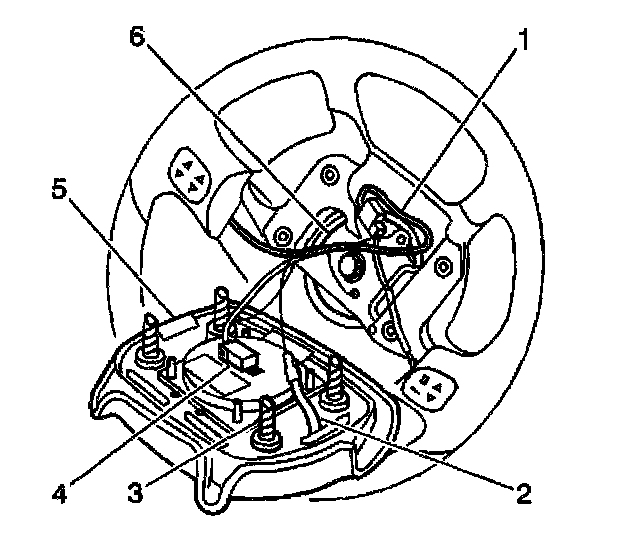 IMPORTANT: Note the driver inflator wire routing positions, the redundant control routing positions, and the horn wire routing positions for the correct re-assembly.