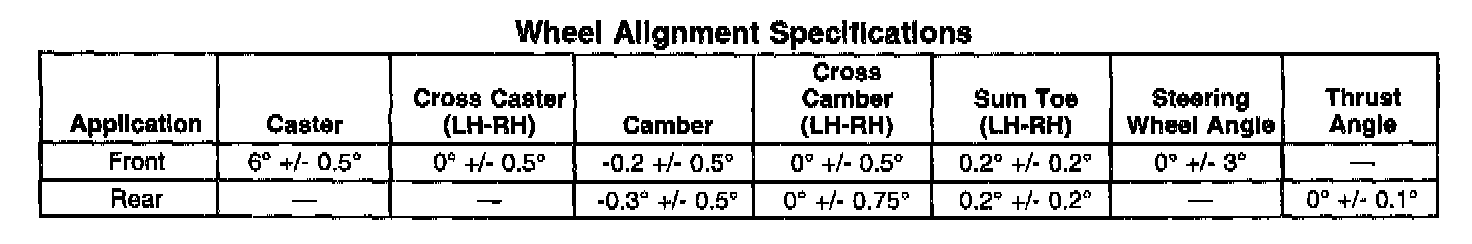 Wheel Alignment Specifications