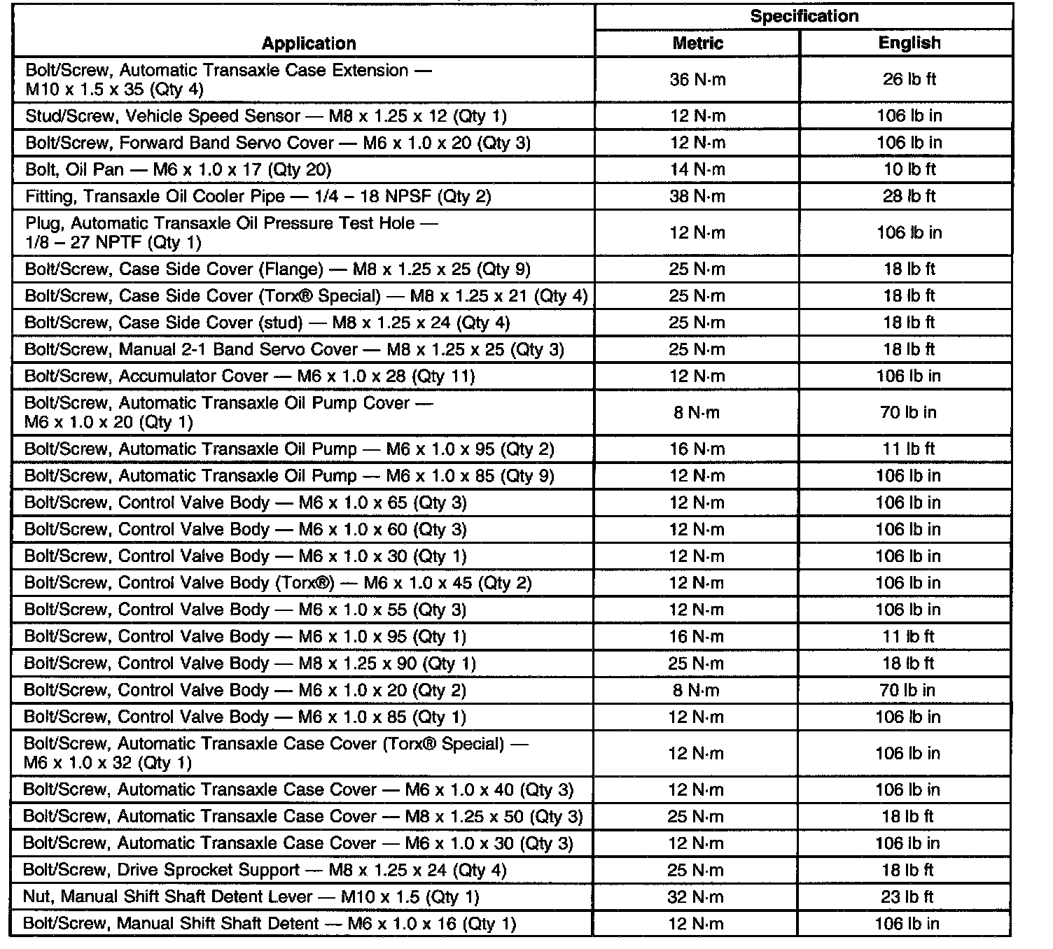 Fastener Tightening Specifications