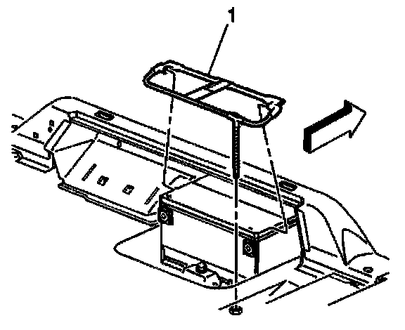 2. Ensure the vent tube (1) is installed in the floor pan grommet and install the retainer and bolt.