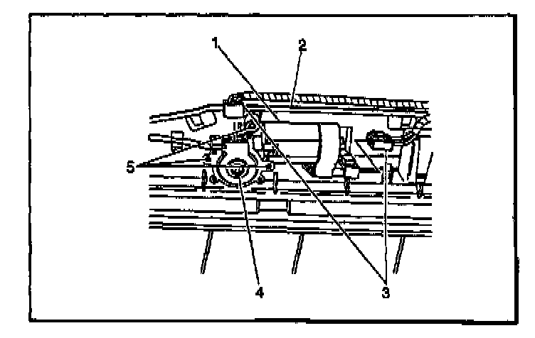 4. Remove the fasteners (5) securing the sunroof motor (1) to the sunroof module (2).