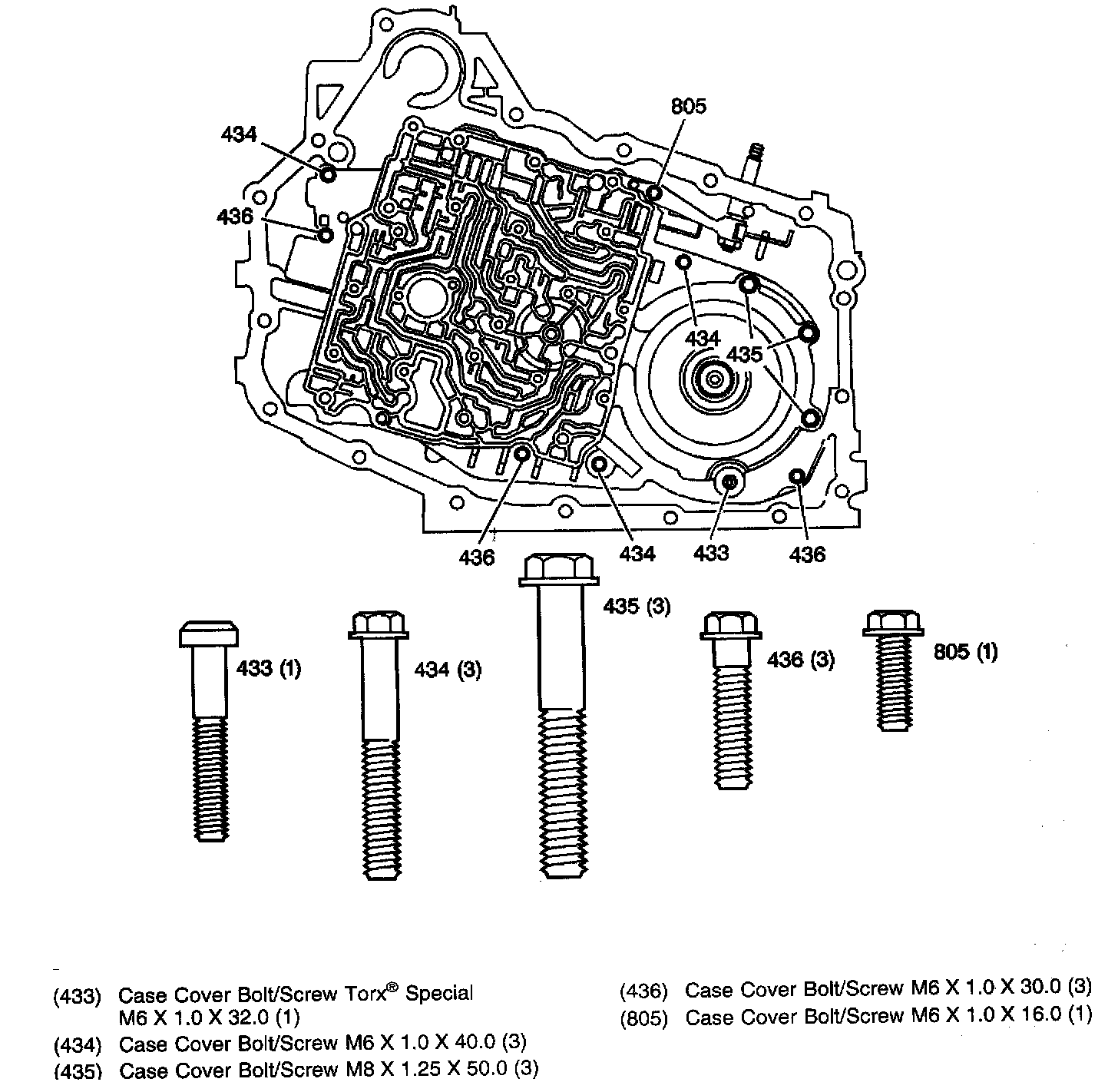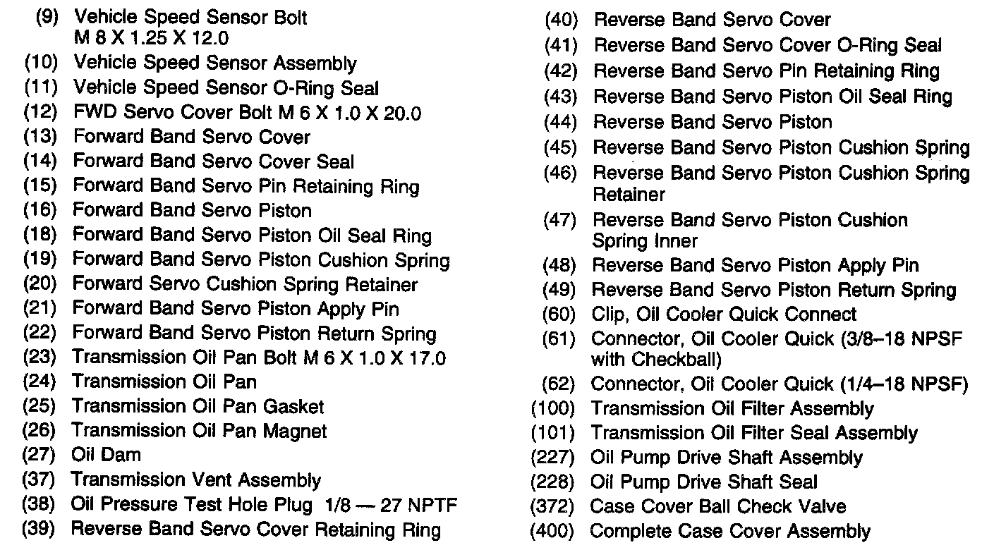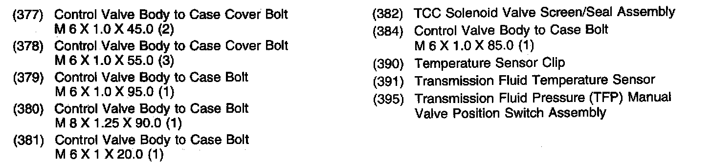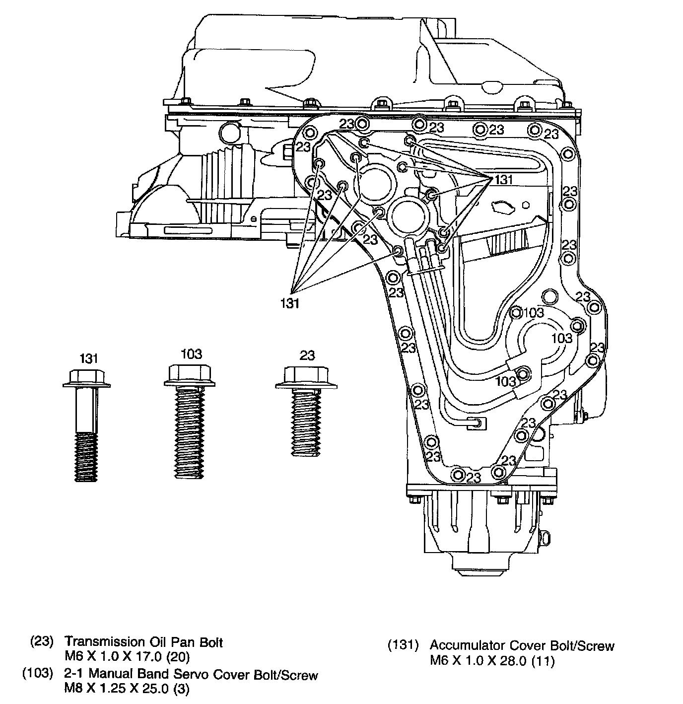 Bottom Pan, Accumulator Cover and Manual 2-1 Band Servo Cover Bolts