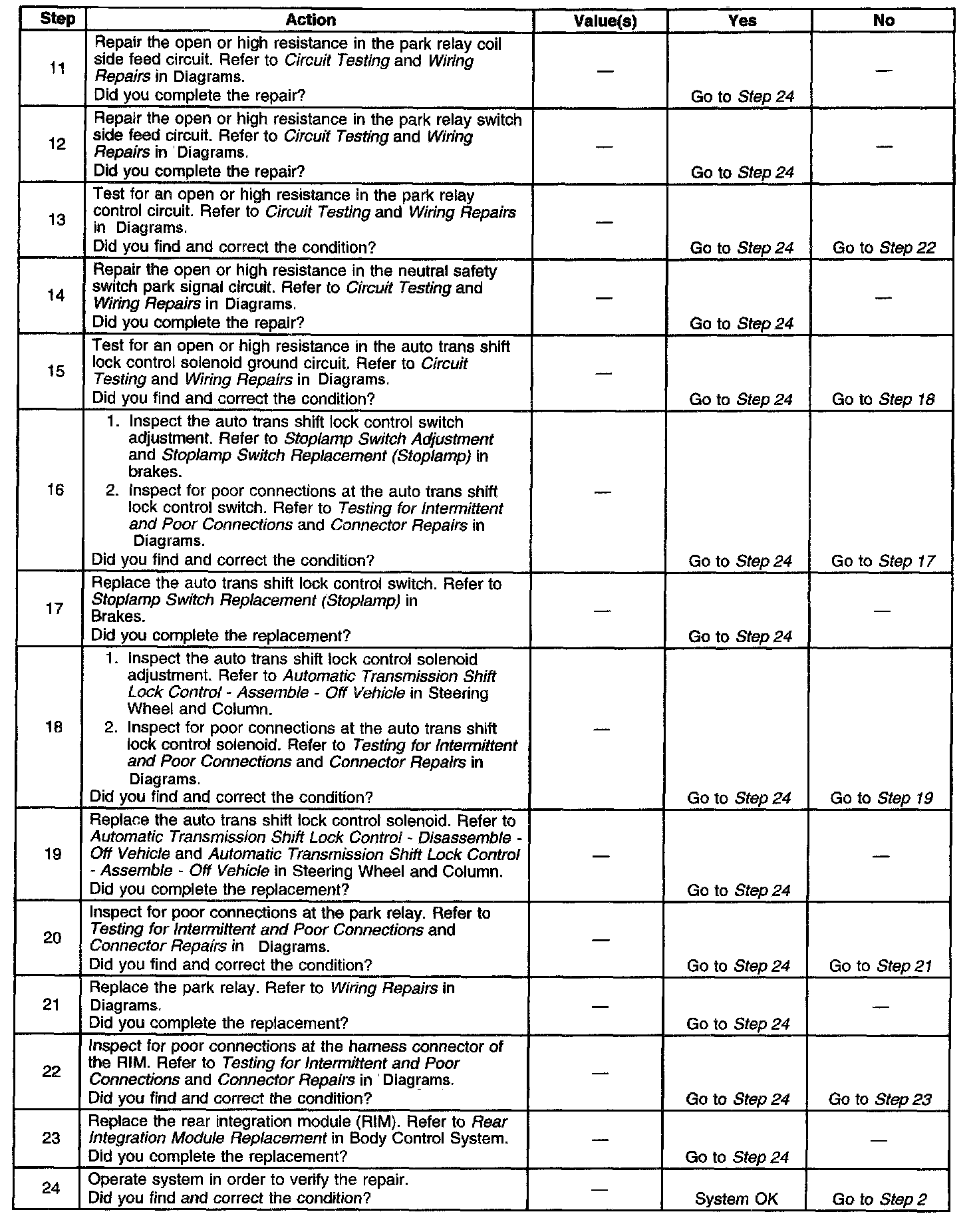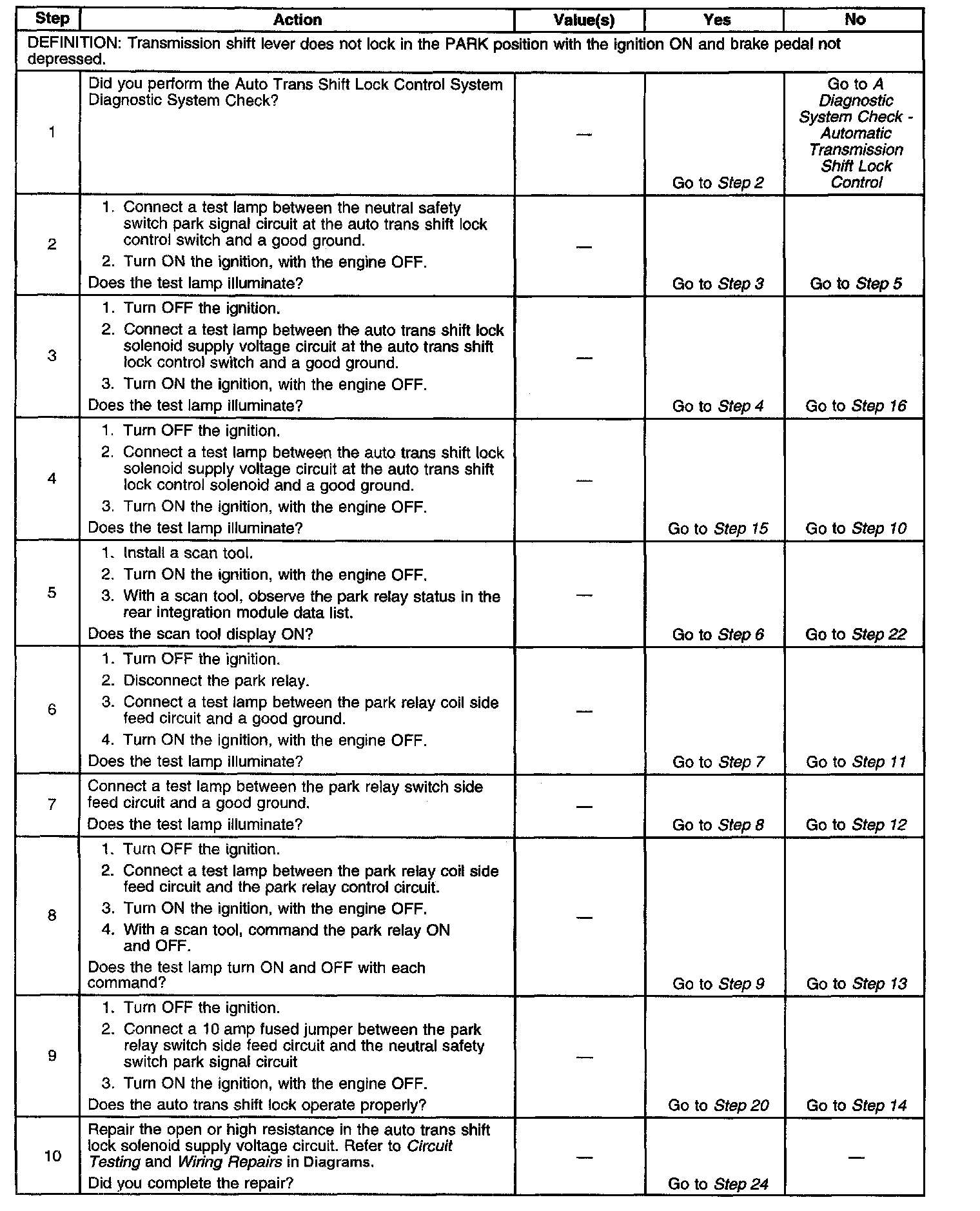 A/T Shift Lock Control Inoperative