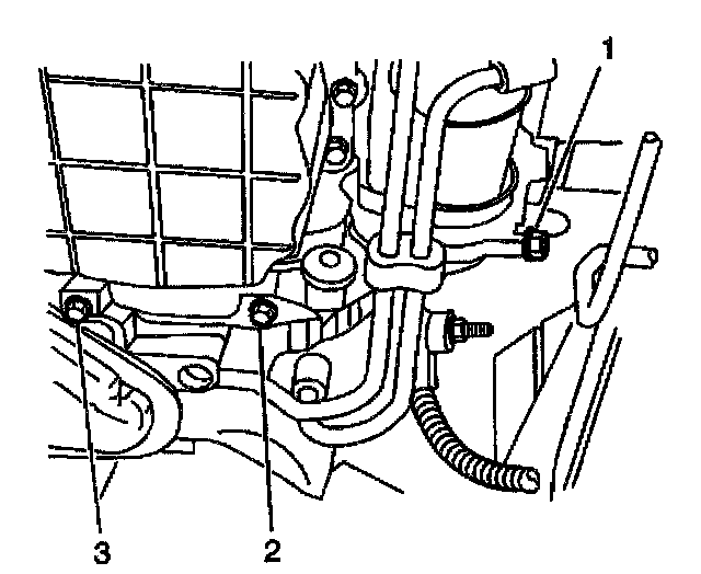 2. Remove the torque converter cover bolts (1, 2, 3). Refer to Torque Converter Cover Replacement